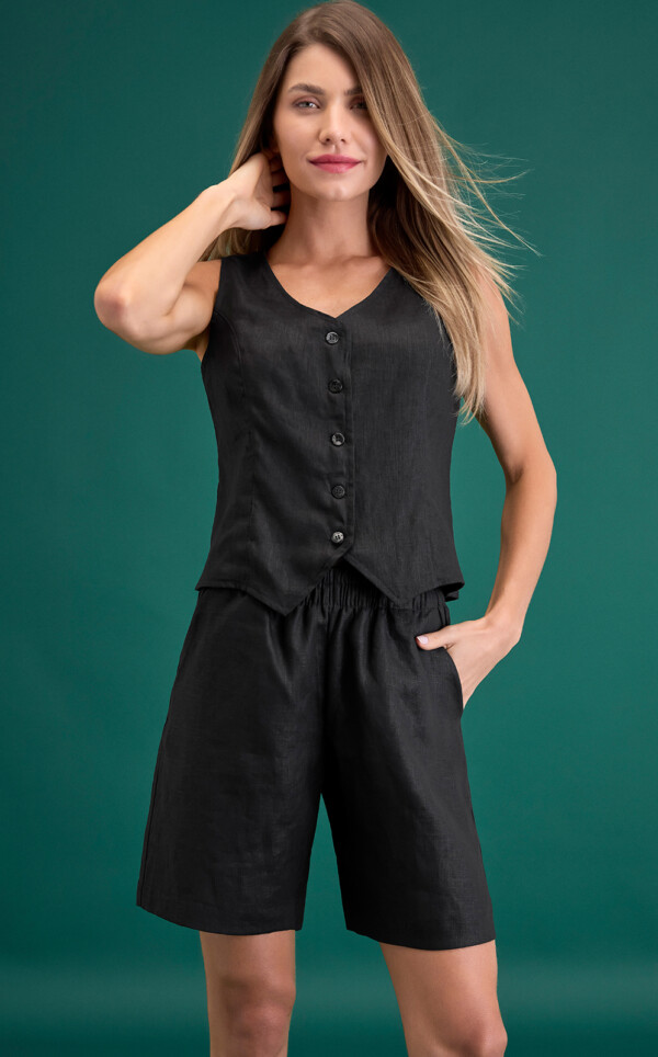Colete Abotoado com Bermuda Puro Linho