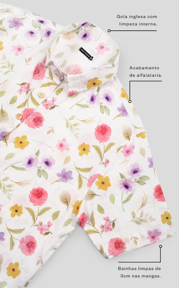 Pijama Americano Manga Curta com Shorts Puro Linho Floral
