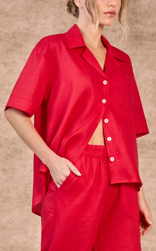 Pijama Americano Manga Curta com Shorts Puro Linho Rubi