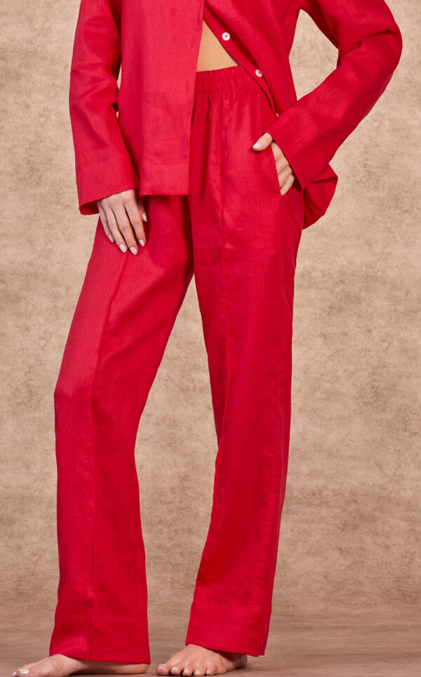 Pijama Americano Manga Longa com Calça Puro Linho Rubi