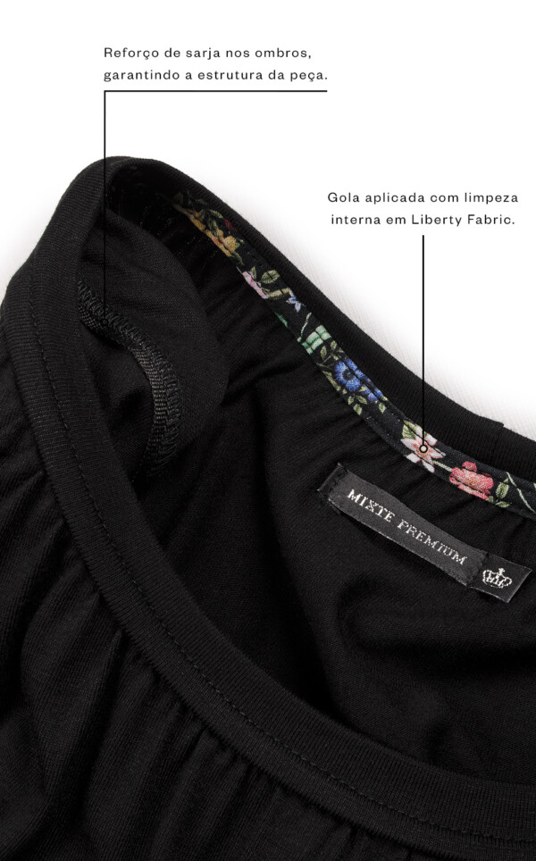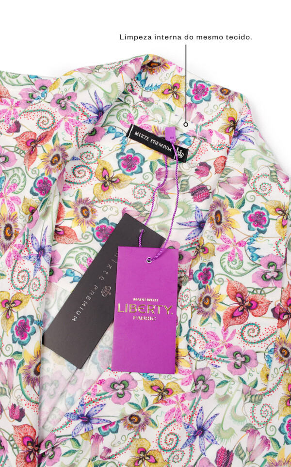 Os tecidos Liberty® Fabrics são carregados de história, e representam o ápice da arte de criação de estampas. Desenvolvidas à mão no atelier da marca em Londres, o estúdio reúne os melhores artesãos de estamparia do mundo inteiro. Estas obras de arte são aplicadas sob tecidos planos importados da Itália, apelidados de Hudson e desenvolvidos com fio de viscose com certificação FSC® (Forest Stewardship Council), que garante que tecidos e produtos derivados da celulose são provenientes de florestas manejadas de forma responsável e que proporcionem benefícios ambientais e socioeconômicos. O produto final chega ao Brasil cuidadosamente homologado por Pettenati, garantindo a qualidade e origem dos materiais utilizados nos pijamas Mixte.