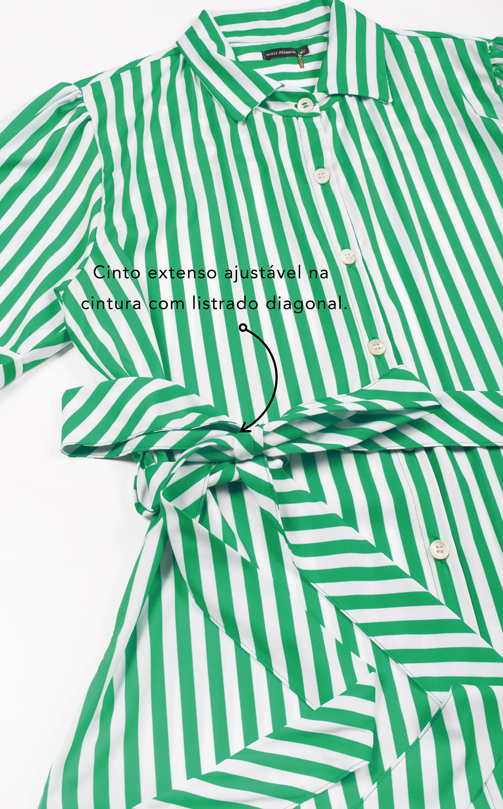 • Cinto extenso ajustável na cintura com listrado diagonal.