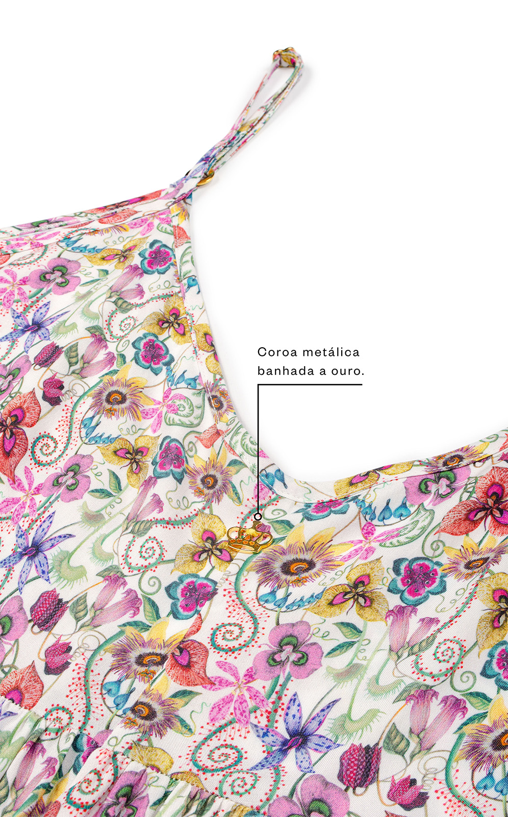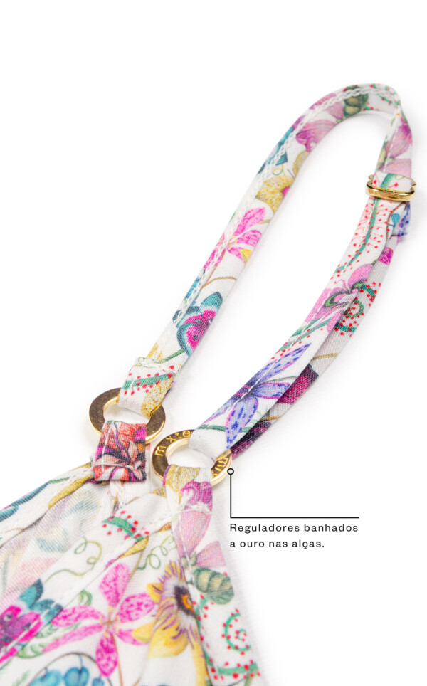 • Detalhe franzido no busto.