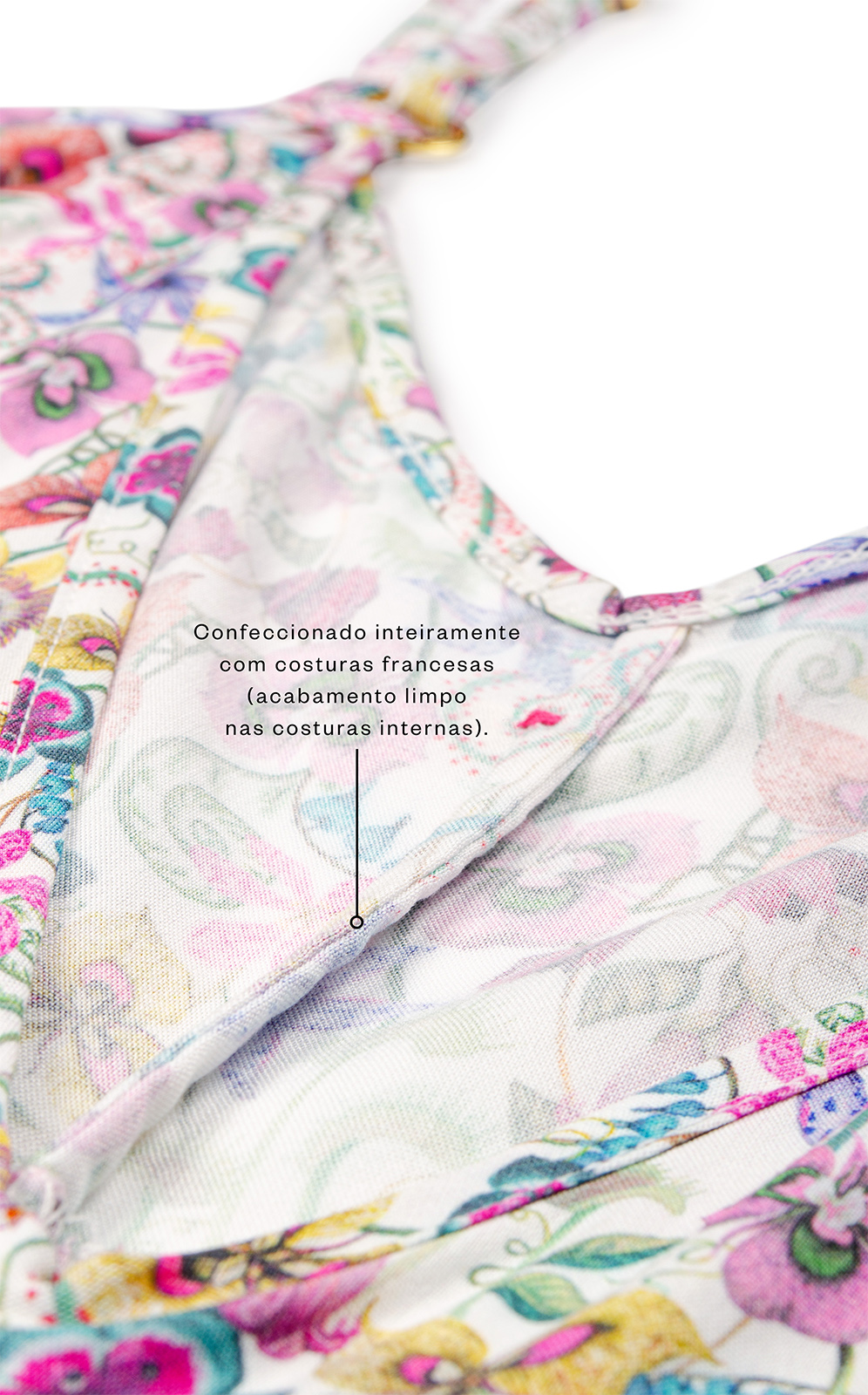 • Confeccionado inteiramente com costuras francesas (acabamento limpo nas costuras internas).