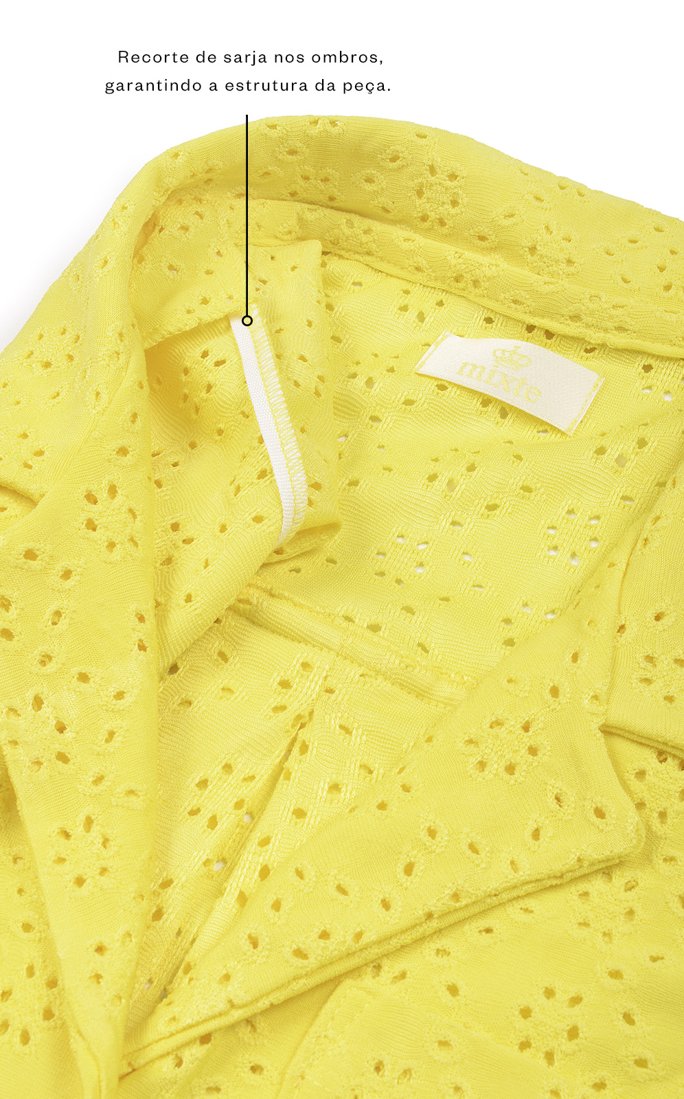 Dotado de um estilo de origem milenar, este tecido é destaque internacional em peças de verão. Com um elegante padrão de costuras perfuradas combinadas com bordados, o visual arejado passa a sensação de leveza e garante conforto devido a maleabilidade proporcionada pelo elastano.