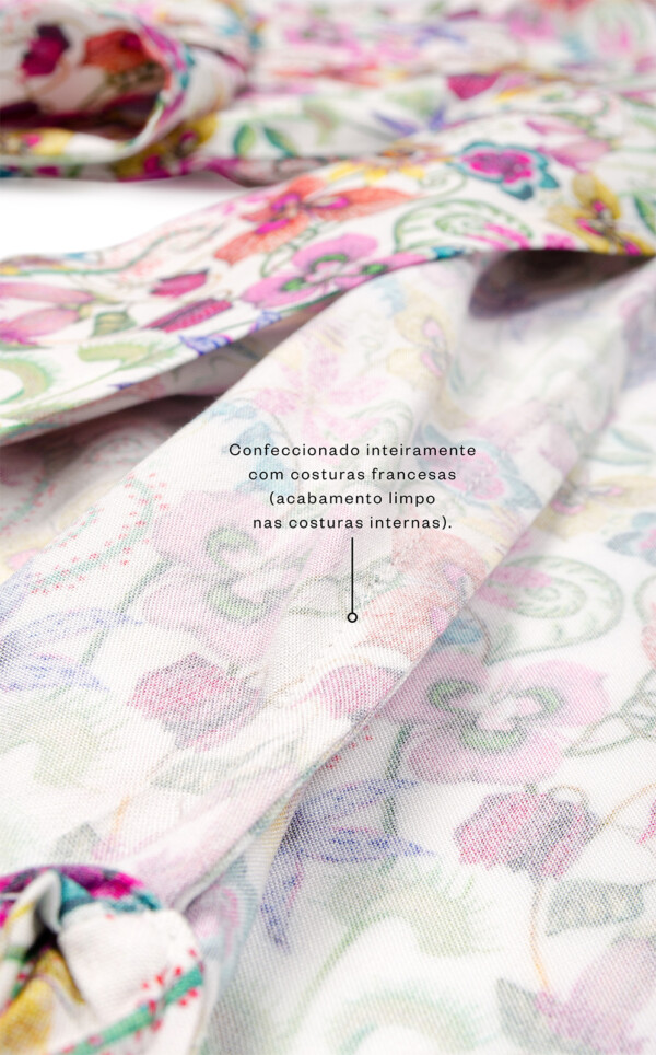 • Confeccionado inteiramente com costuras francesas (acabamento limpo nas costuras internas).