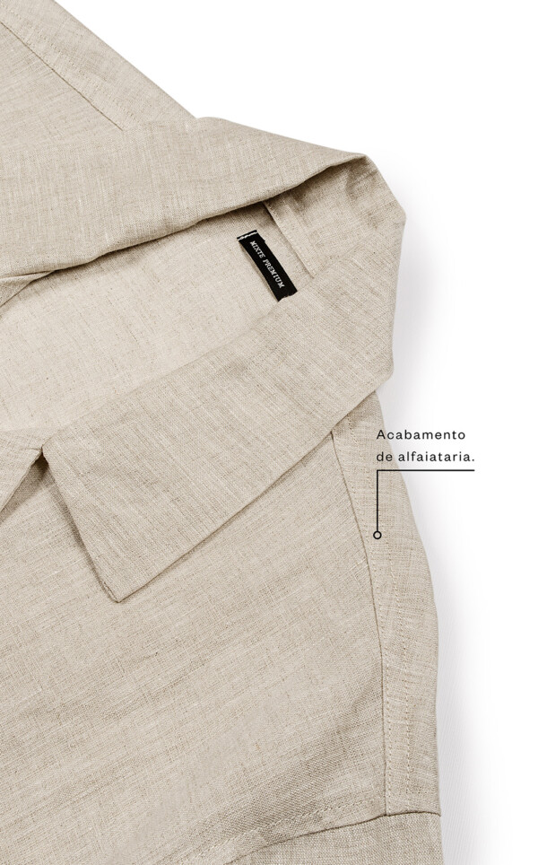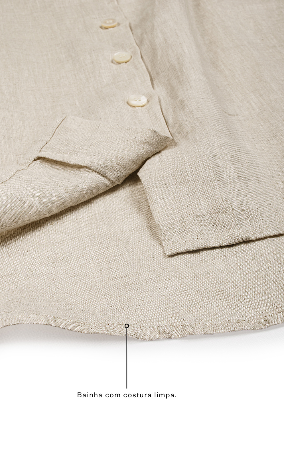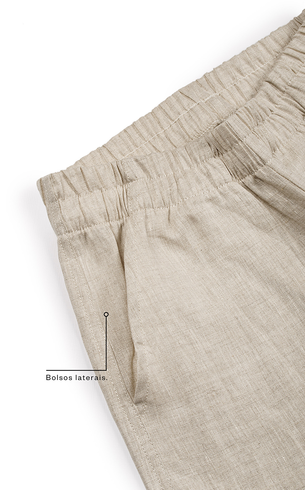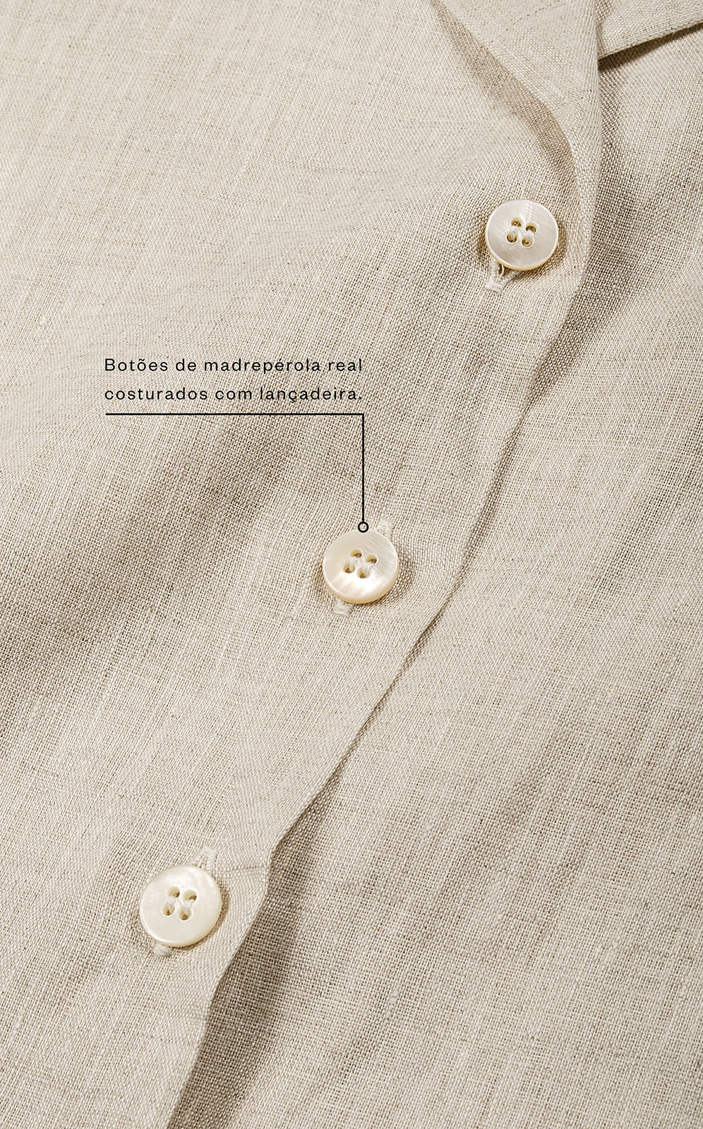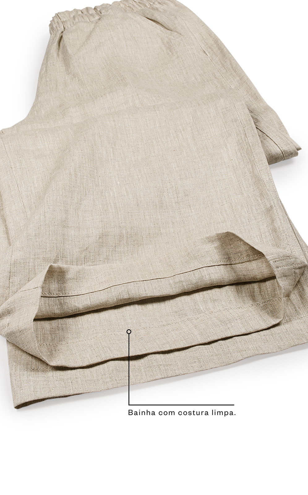 O tecido quintessencial do verão: totalmente natural, o fio de linho é um tecido durável e forte, porém leve e respirável. Por ser uma fibra com trama mais grossa, o tecido é menos propenso a se agarrar na pele, descansando sobre ela com sua textura refrescante e ondulada. O amassado é belo — esqueça o ferro de passar por alguns dias: estes conjuntos ficam melhores quanto mais forem utilizados e ganham beleza ao passar do tempo.