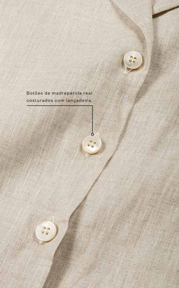 • Botões de madrepérola real costurados com lançadeira. Fixos para sempre!