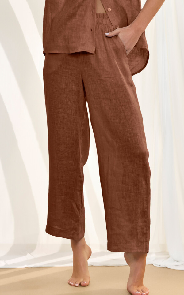 Pijama Americano Manga Curta com Capri Puro Linho Brown