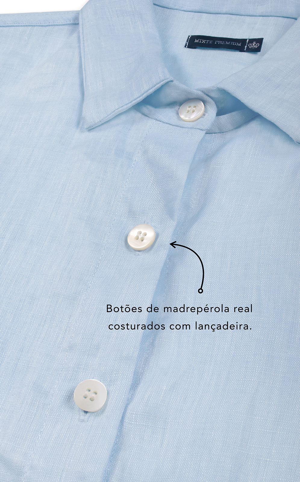 • Botões de madrepérola real costurados com lançadeira. Fixos para sempre!