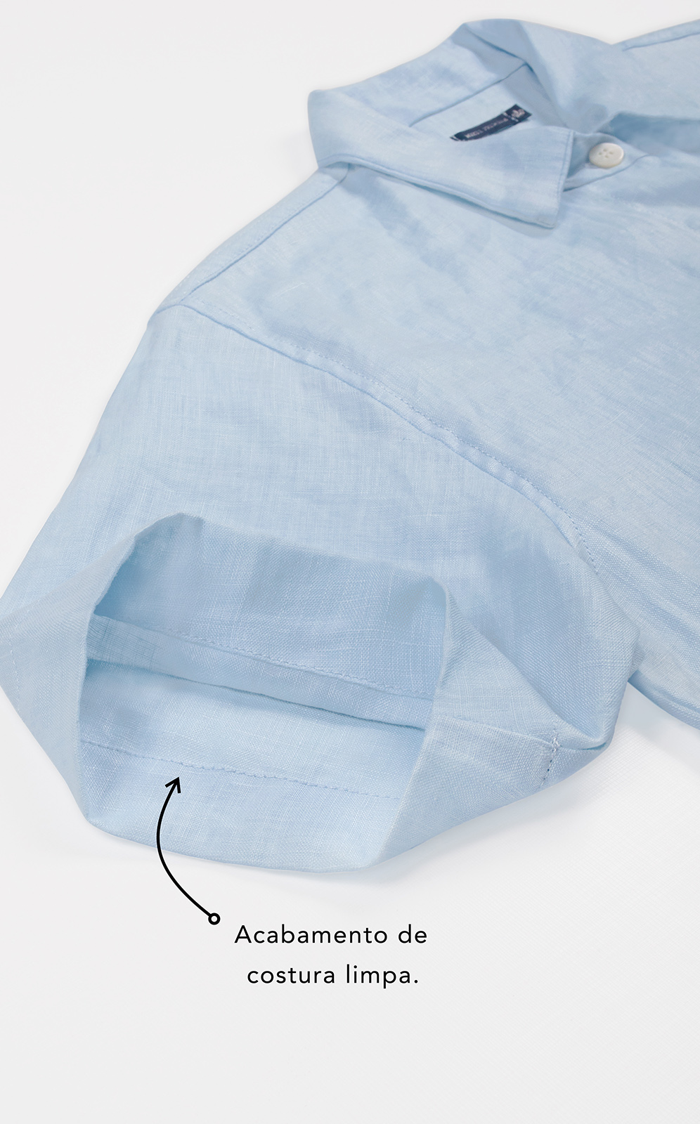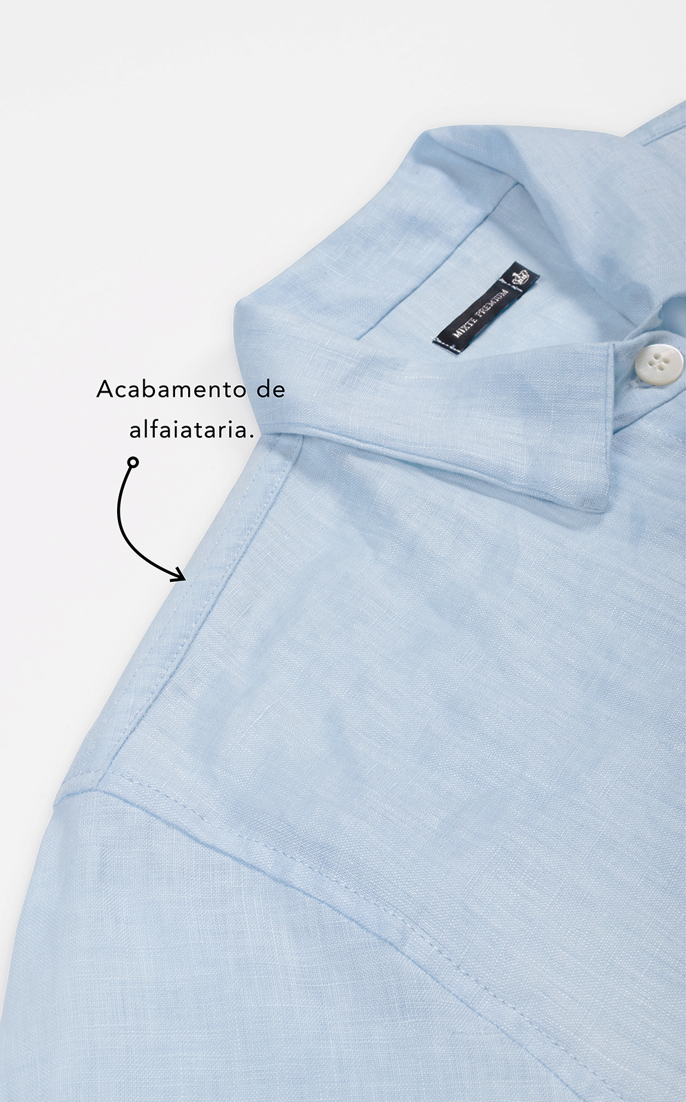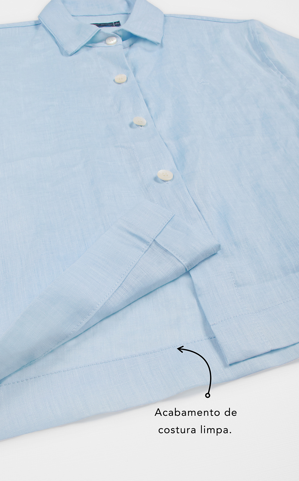 O tecido quintessencial do verão: totalmente natural, o fio de linho é um tecido durável e forte, porém leve e respirável. Por ser uma fibra com trama mais grossa, o tecido é menos propenso a se agarrar na pele, descansando sobre ela com sua textura refrescante e ondulada. O amassado é belo — esqueça o ferro de passar por alguns dias: estes conjuntos ficam melhores quanto mais forem utilizados e ganham beleza ao passar do tempo.