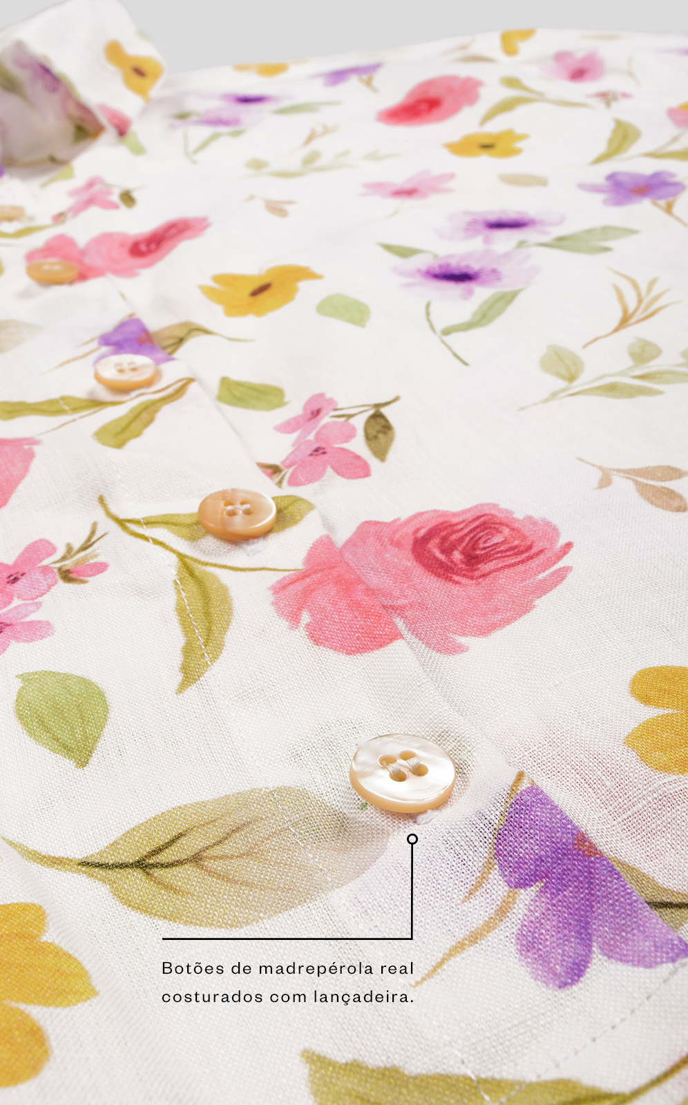 O tecido quintessencial do verão: totalmente natural, o fio de linho é um tecido durável e forte, porém leve e respirável. Por ser uma fibra com trama mais grossa, o tecido é menos propenso a se agarrar na pele, descansando sobre ela com sua textura refrescante e ondulada. O amassado é belo — esqueça o ferro de passar por alguns dias: estes conjuntos ficam melhores quanto mais forem utilizados e ganham beleza ao passar do tempo.