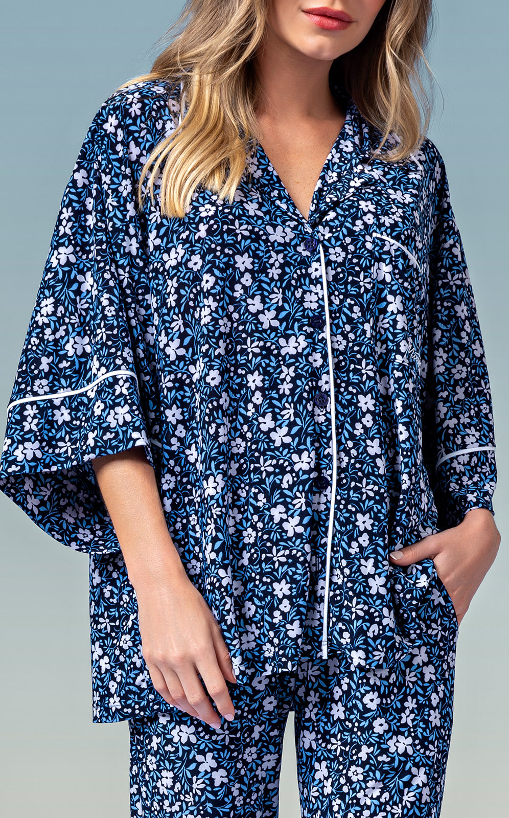 ENCANTO RETRÔ – Levíssima e com novo estampado liberty, nossa liganete se destaca com aplicações color-block.