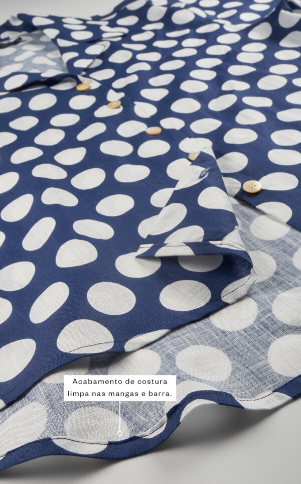 • Acabamento de costura limpa nas mangas e barra.