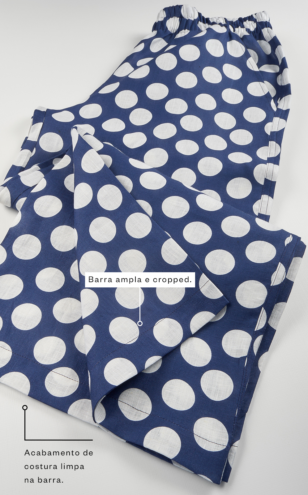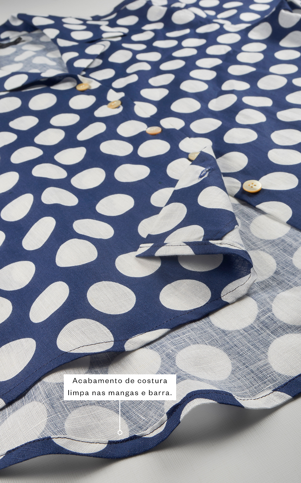 • Acabamento de costura limpa na barra.
