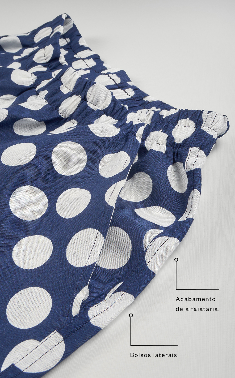 • Elástico na cintura com costura limpa.