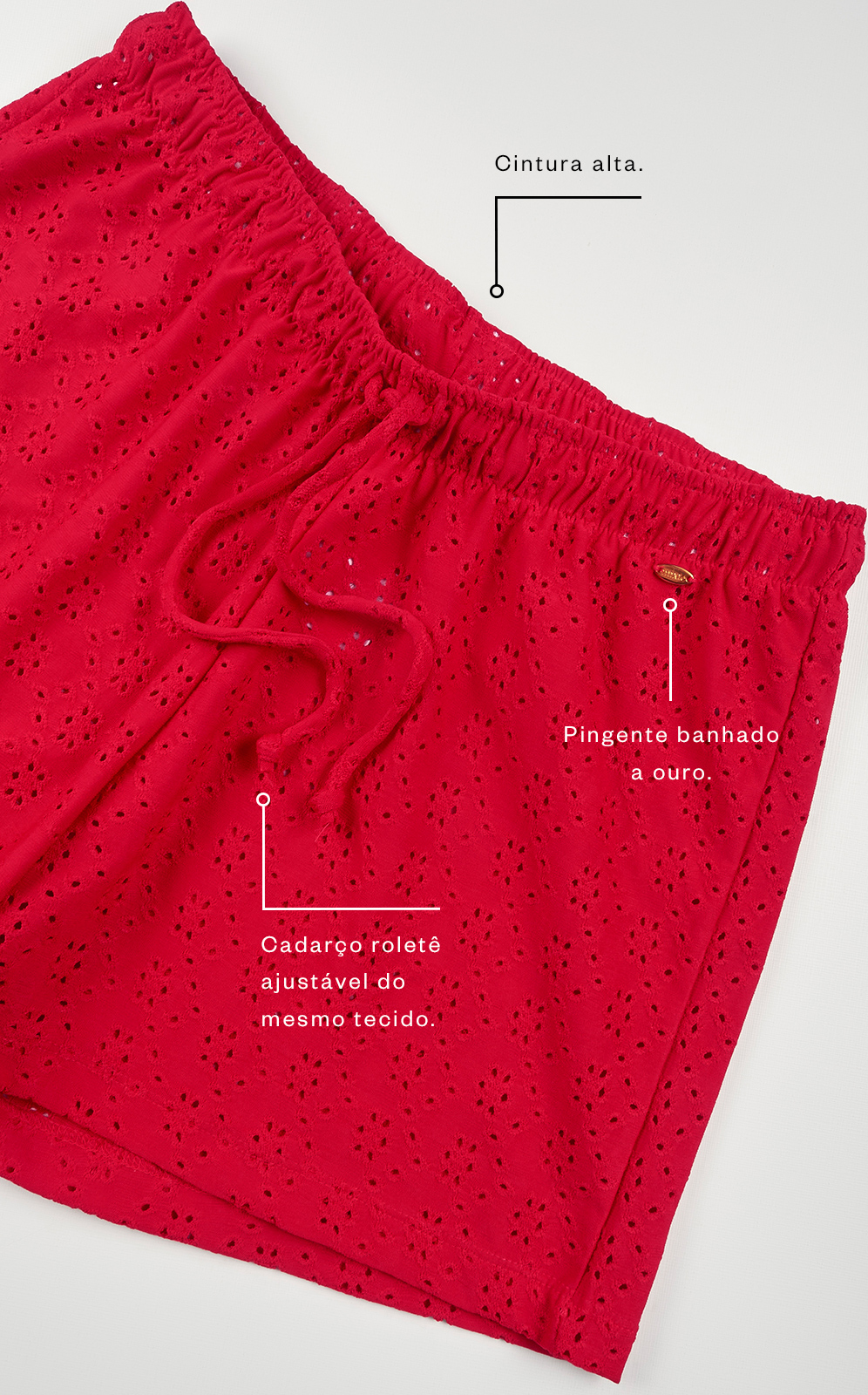• Cadarço roletê ajustável do mesmo tecido.