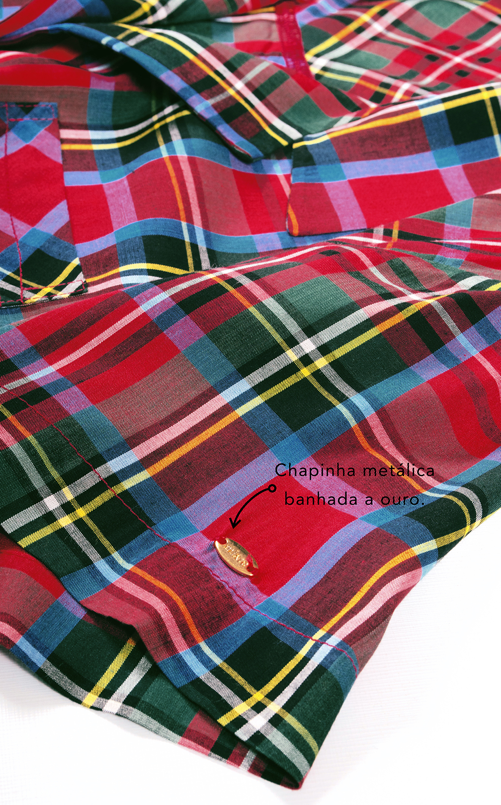 • Botões personalizados costurados com lançadeira.