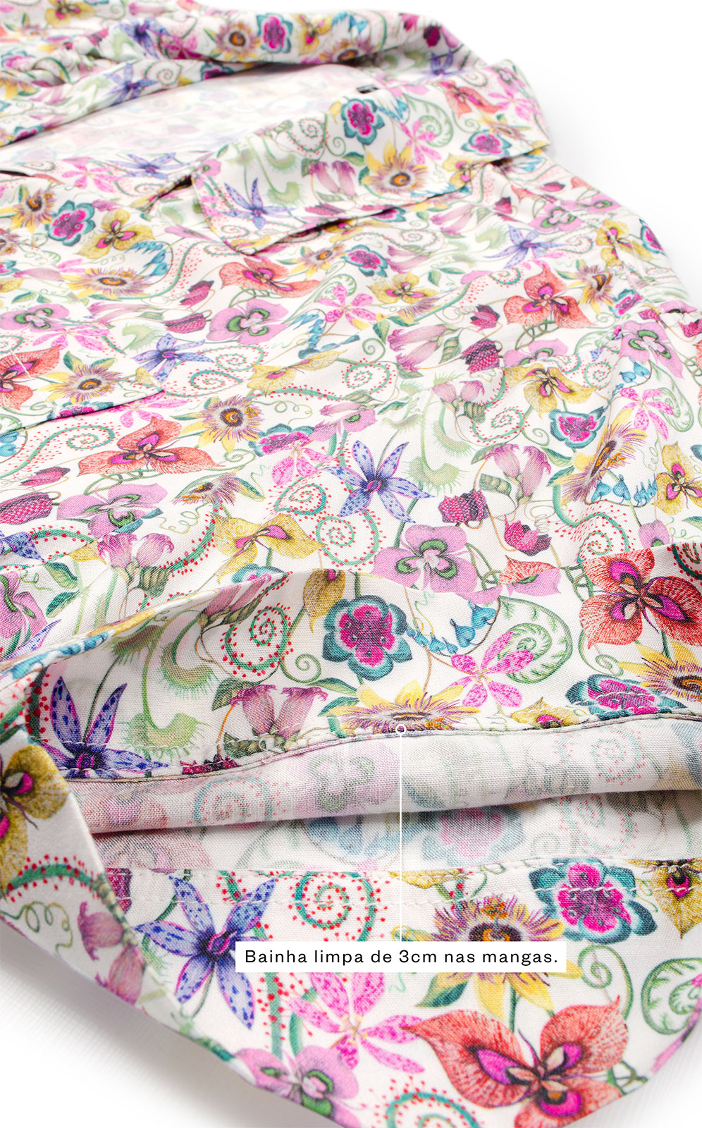 • Bainhas limpas de 3cm nas mangas.