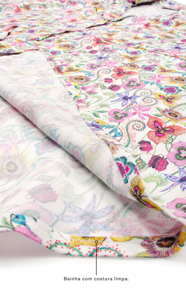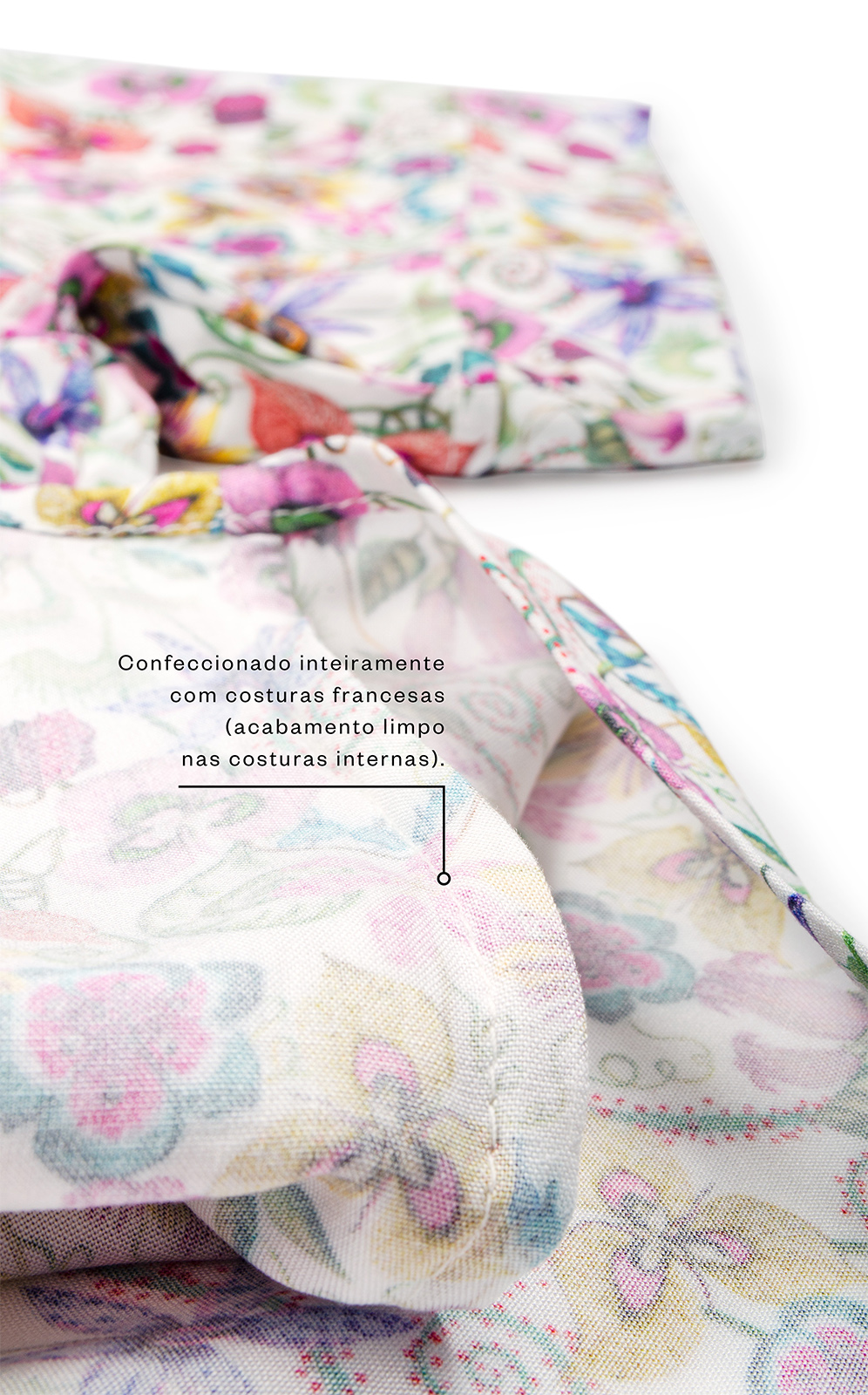 • Confeccionado inteiramente com costuras francesas (acabamento limpo nas costuras internas).
