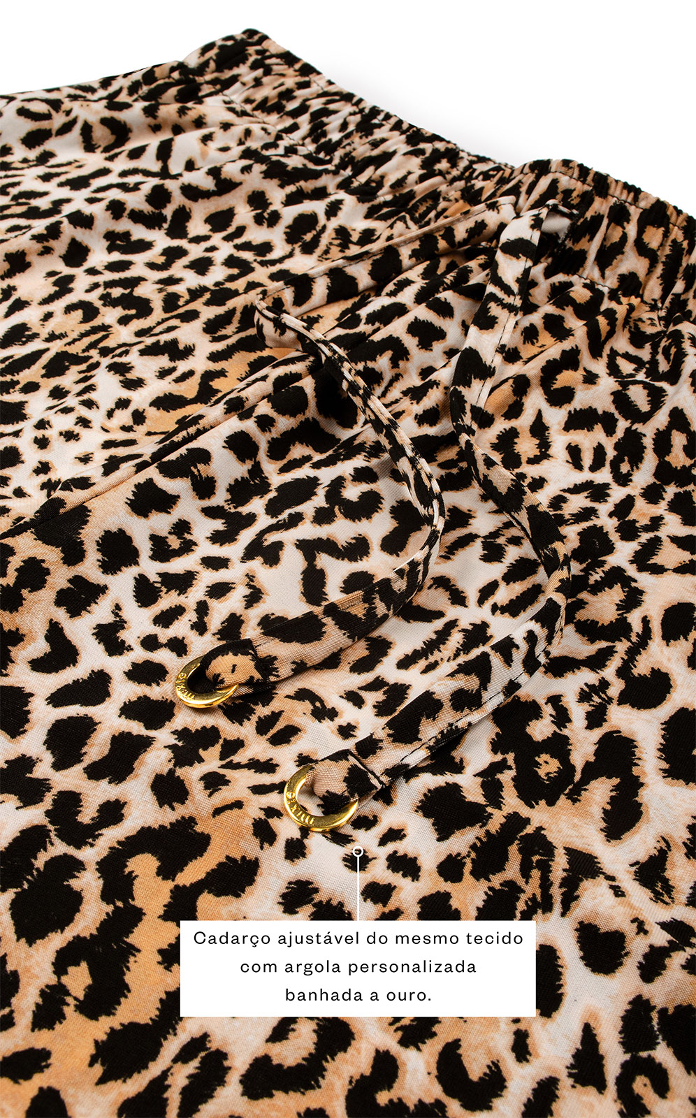 • Cadarço ajustável do mesmo tecido com argola personalizada banhada a ouro.