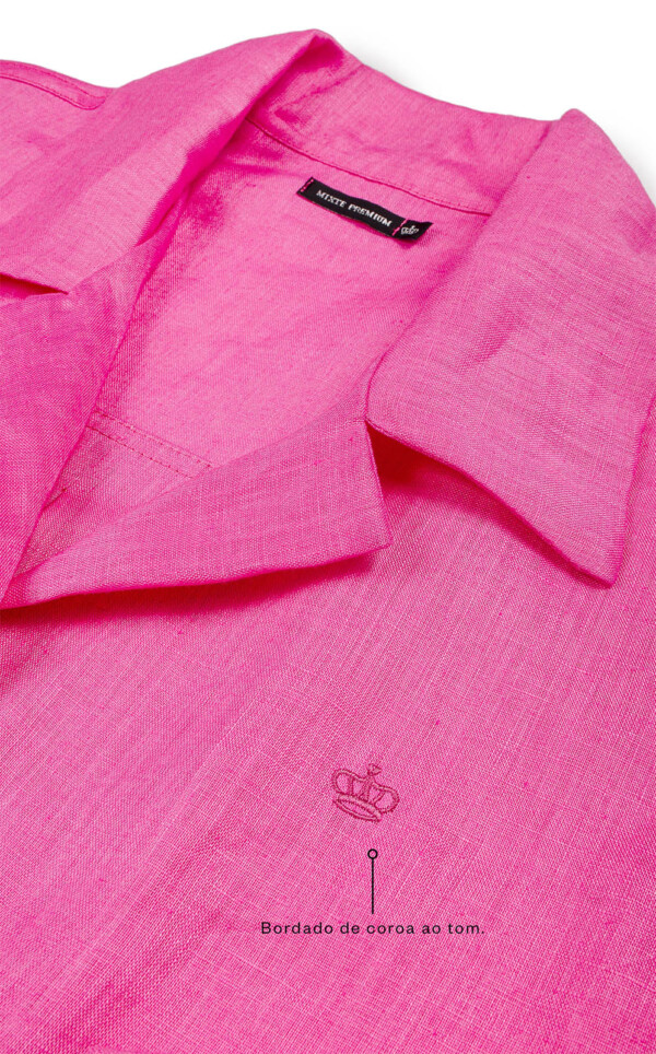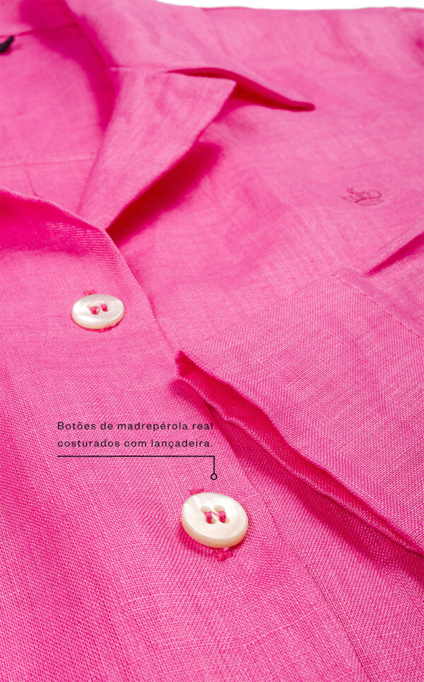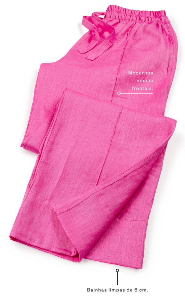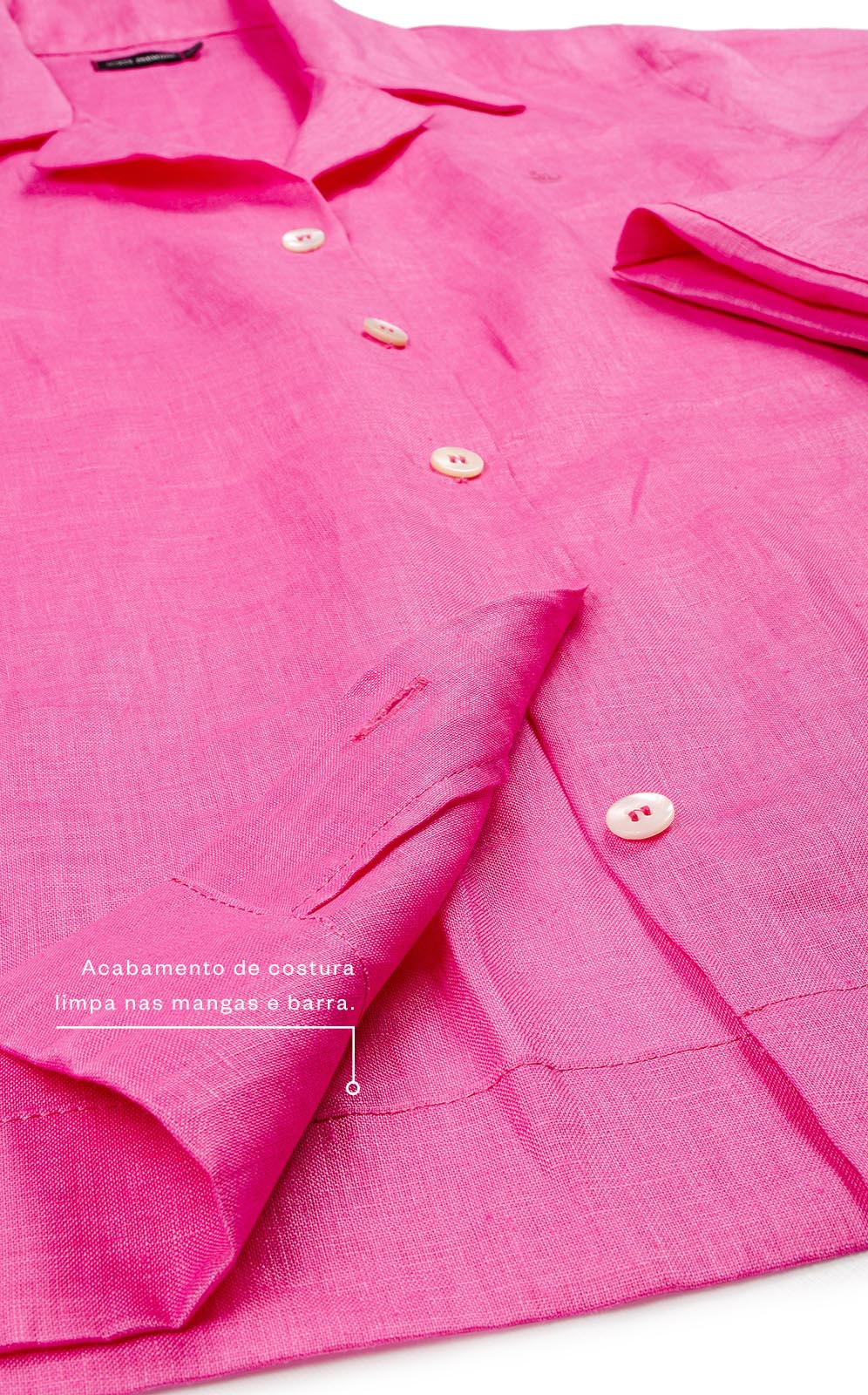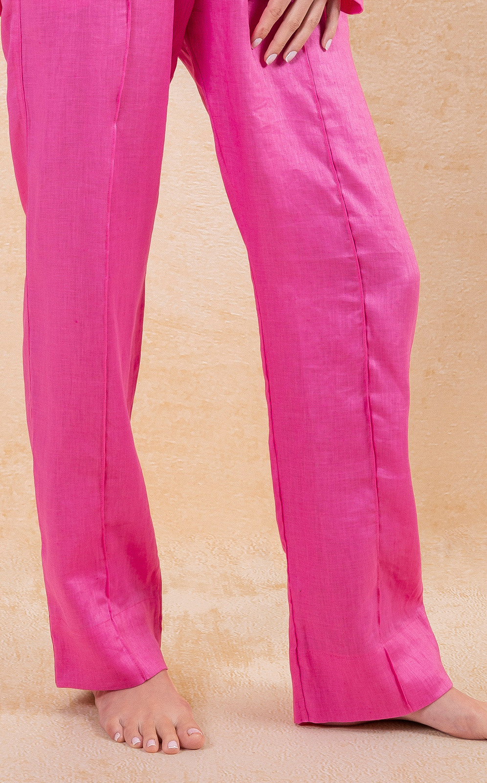 Pijama Americano Manga Longa com Calça Puro Linho Pink