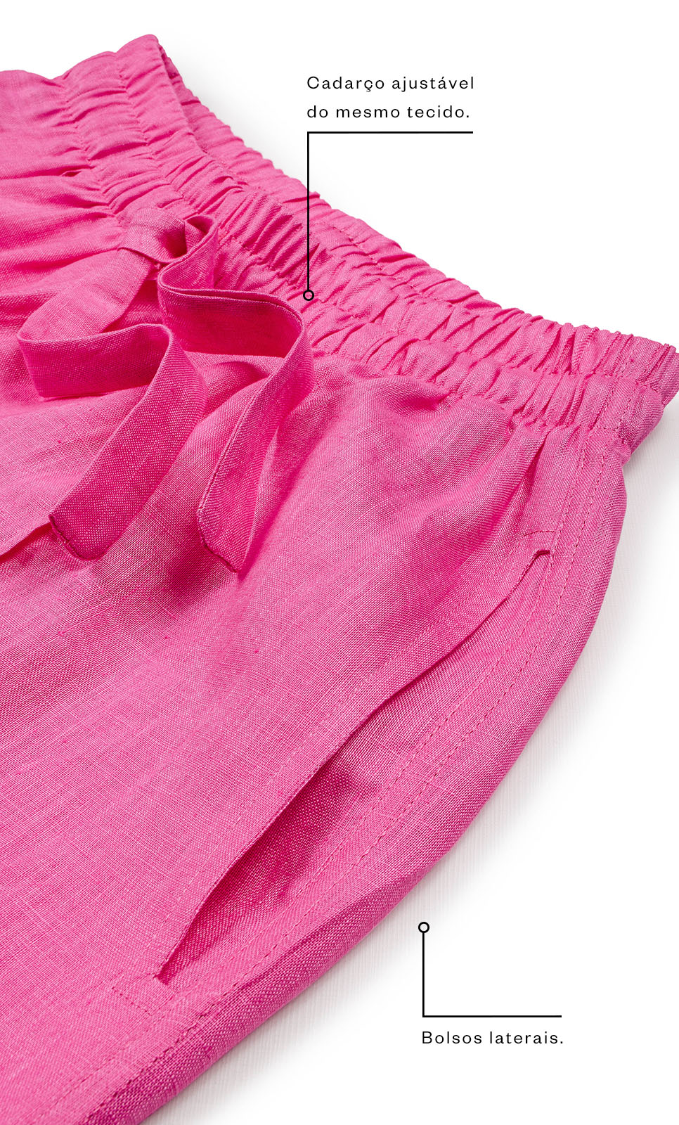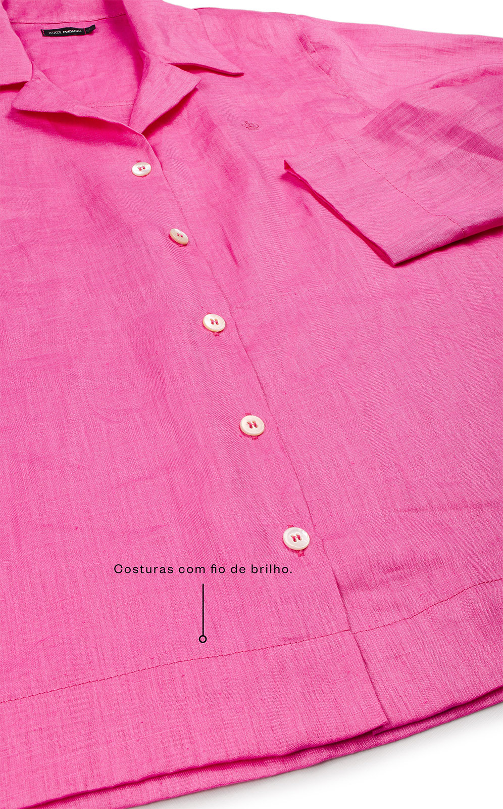 O tecido quintessencial do verão: totalmente natural, o fio de linho é um tecido durável e forte, porém leve e respirável. Por ser uma fibra com trama mais grossa, o tecido é menos propenso a se agarrar na pele, descansando sobre ela com sua textura refrescante e ondulada. O amassado é belo — esqueça o ferro de passar por alguns dias: estes conjuntos ficam melhores quanto mais forem utilizados e ganham beleza ao passar do tempo.