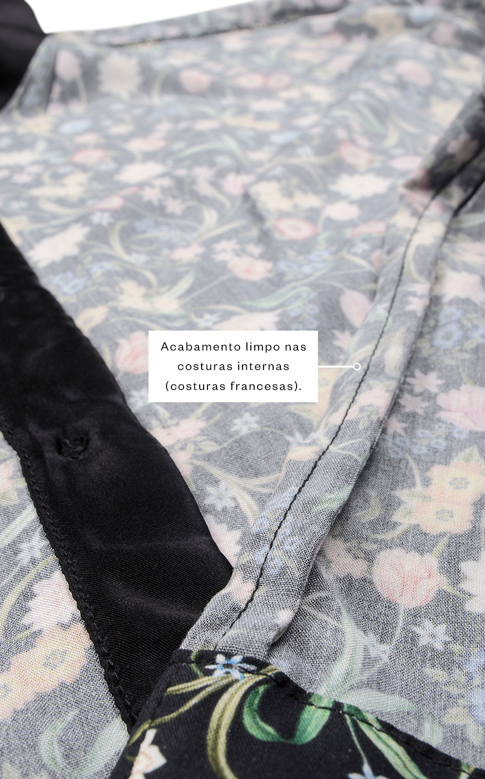• Confeccionado inteiramente com costuras francesas (acabamento limpo nas costuras internas).