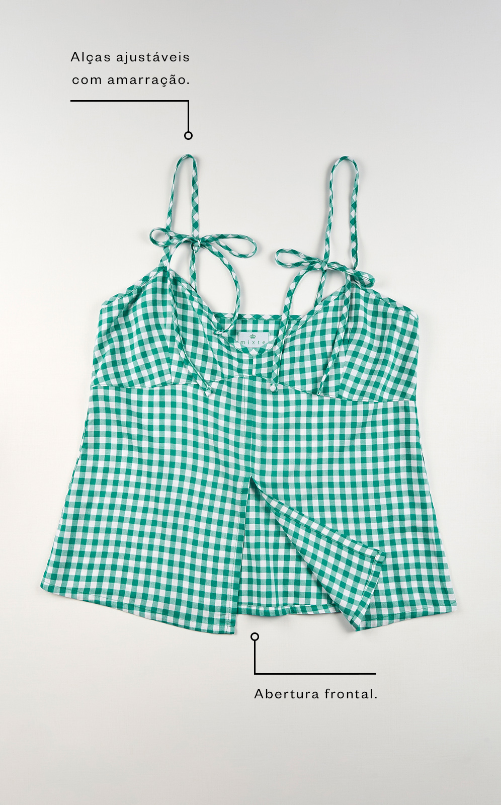 • Recorte frontal no busto com forrado interno.