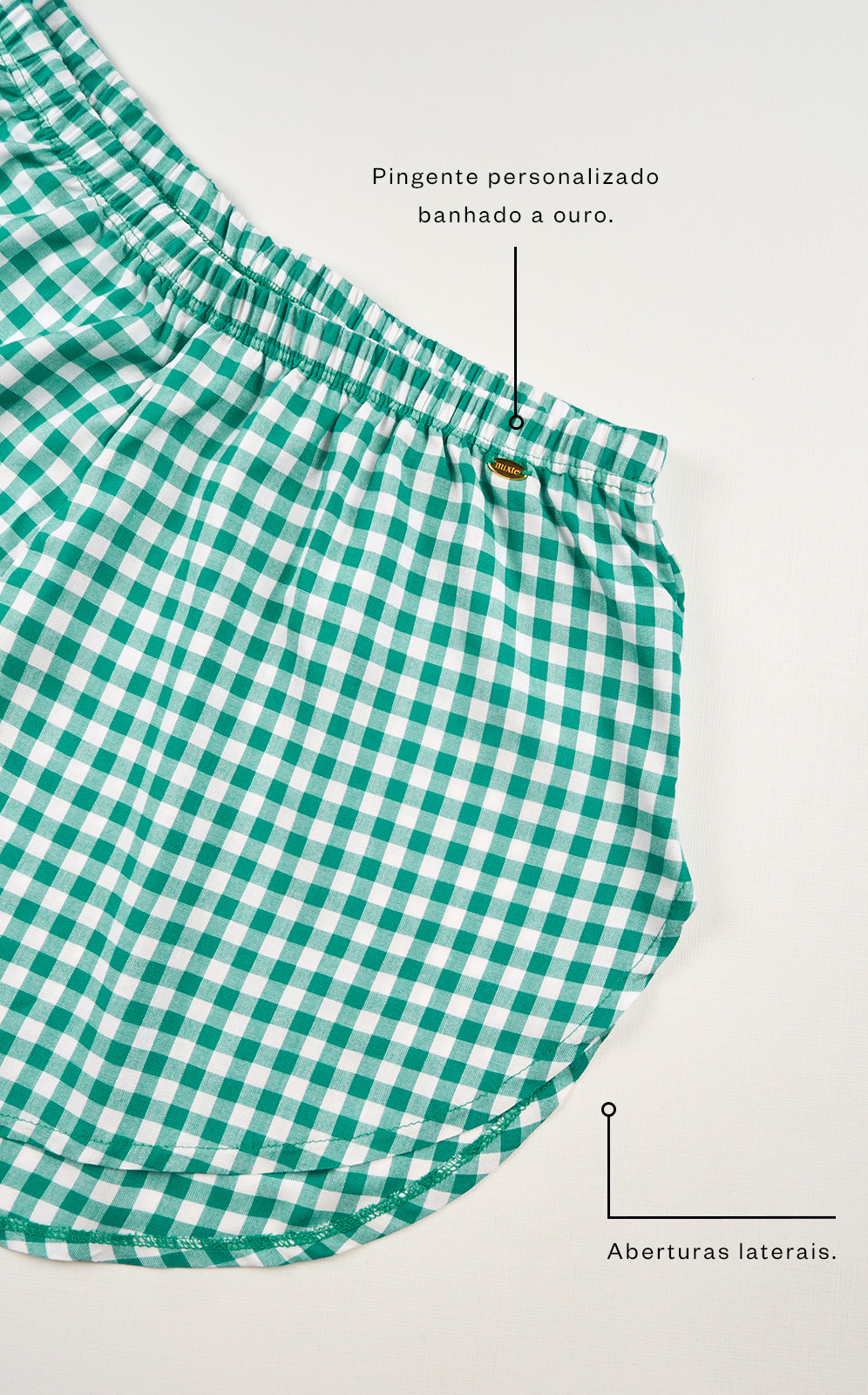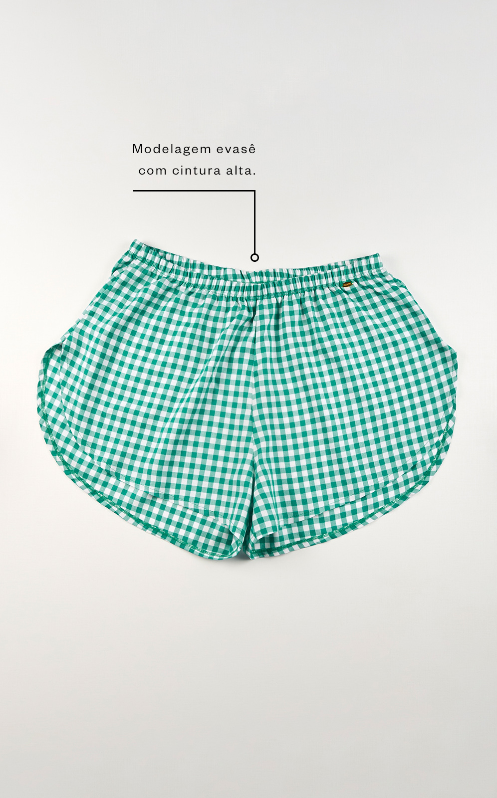 • Modelagem evasê com cintura alta.