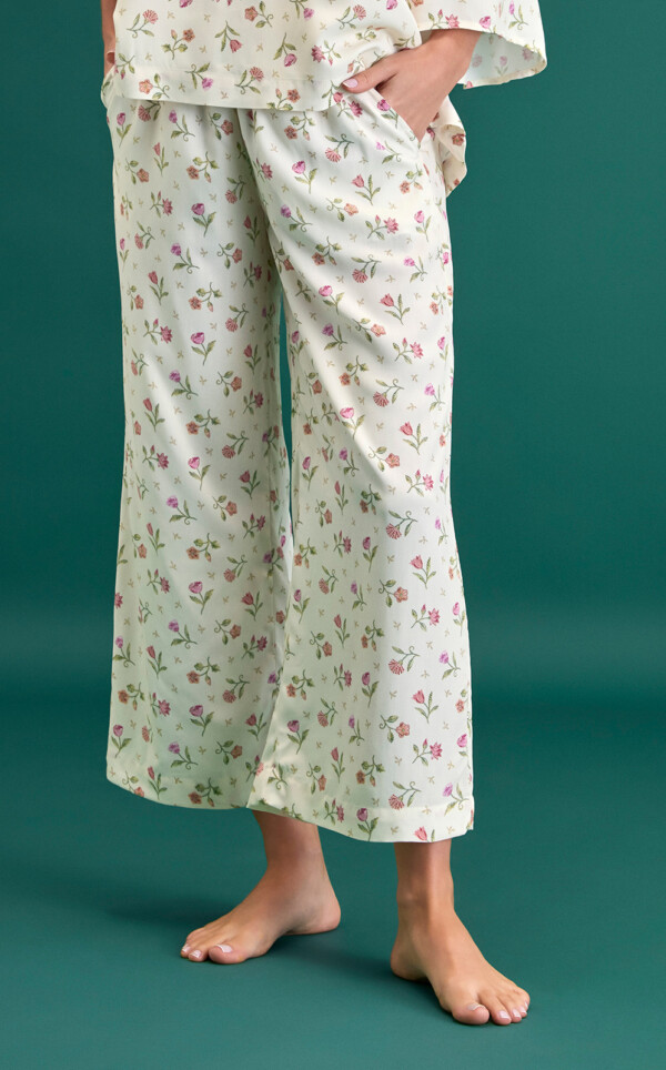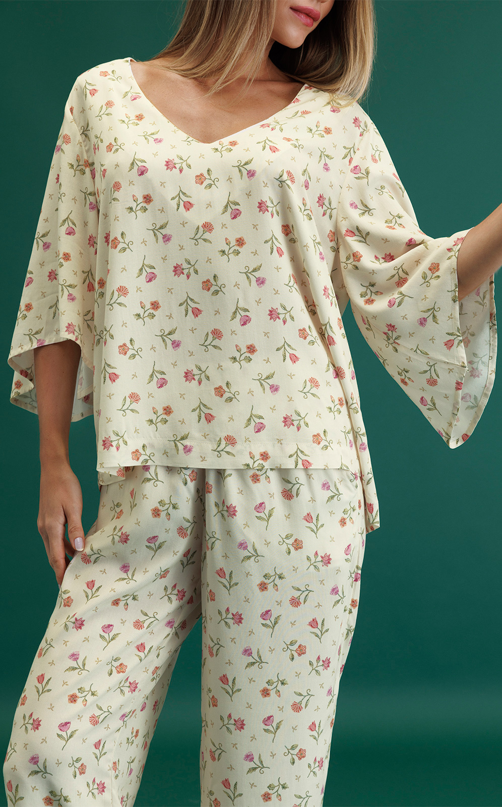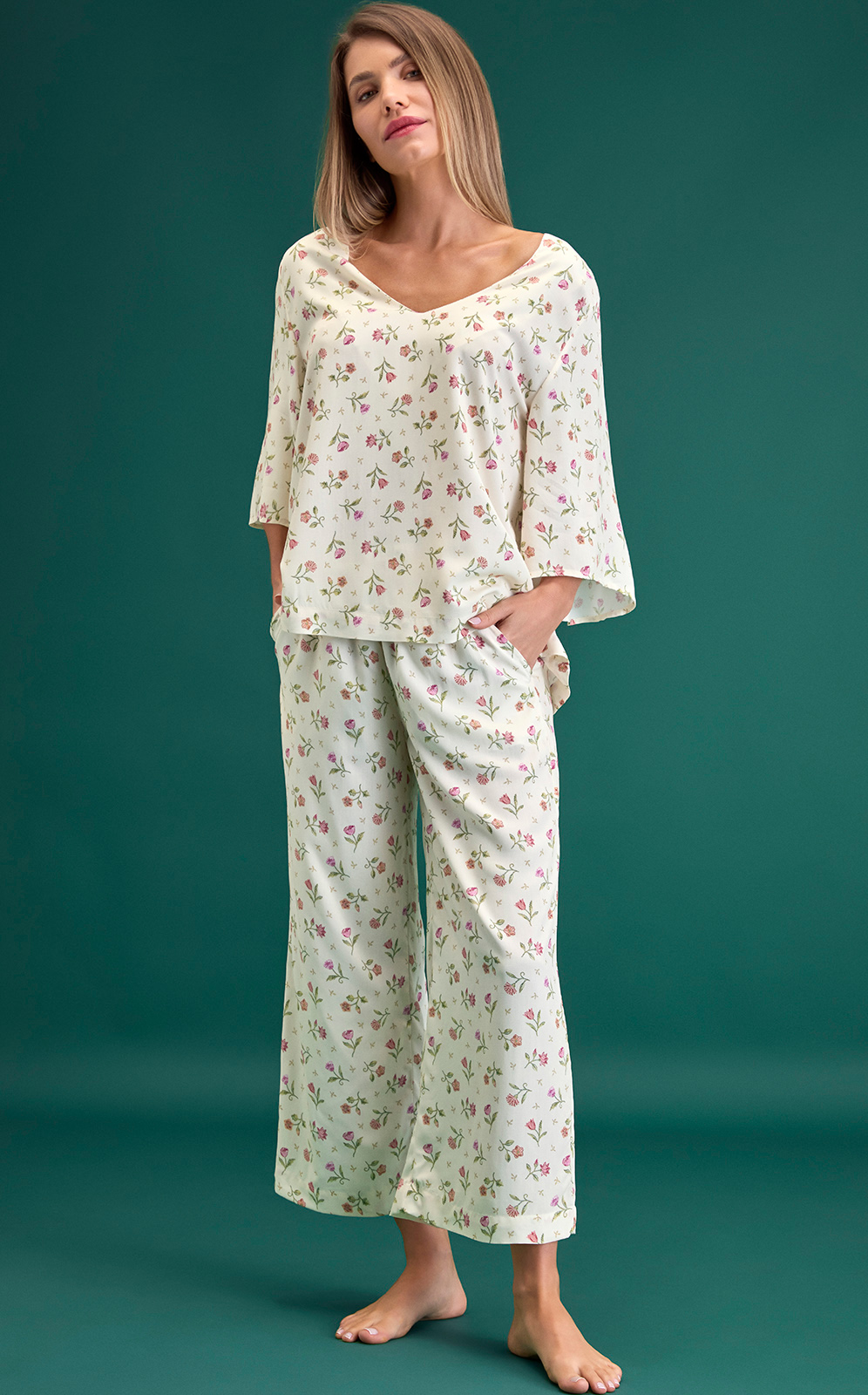 Pijama Blusa Manga Ampla com Calça Cropped Marena