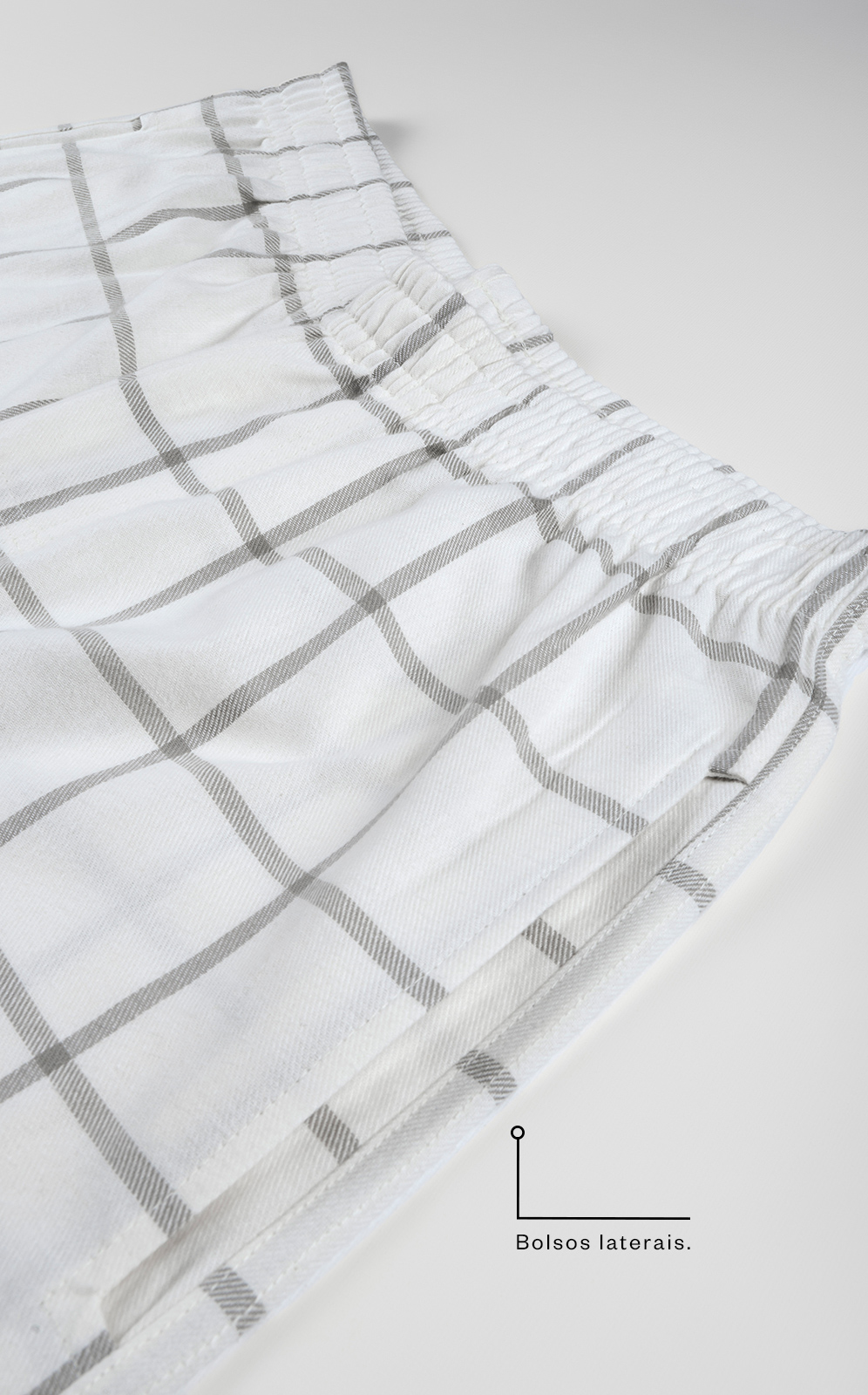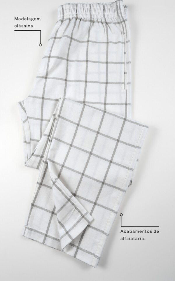 A Flanela de Algodão proporciona um toque suave, aveludado e único em nossos conjuntos. Confeccionado com fibras naturais nobres, é o tecido quintessencial do Inverno: aconchegante, quentinho e com elegância de sobra.