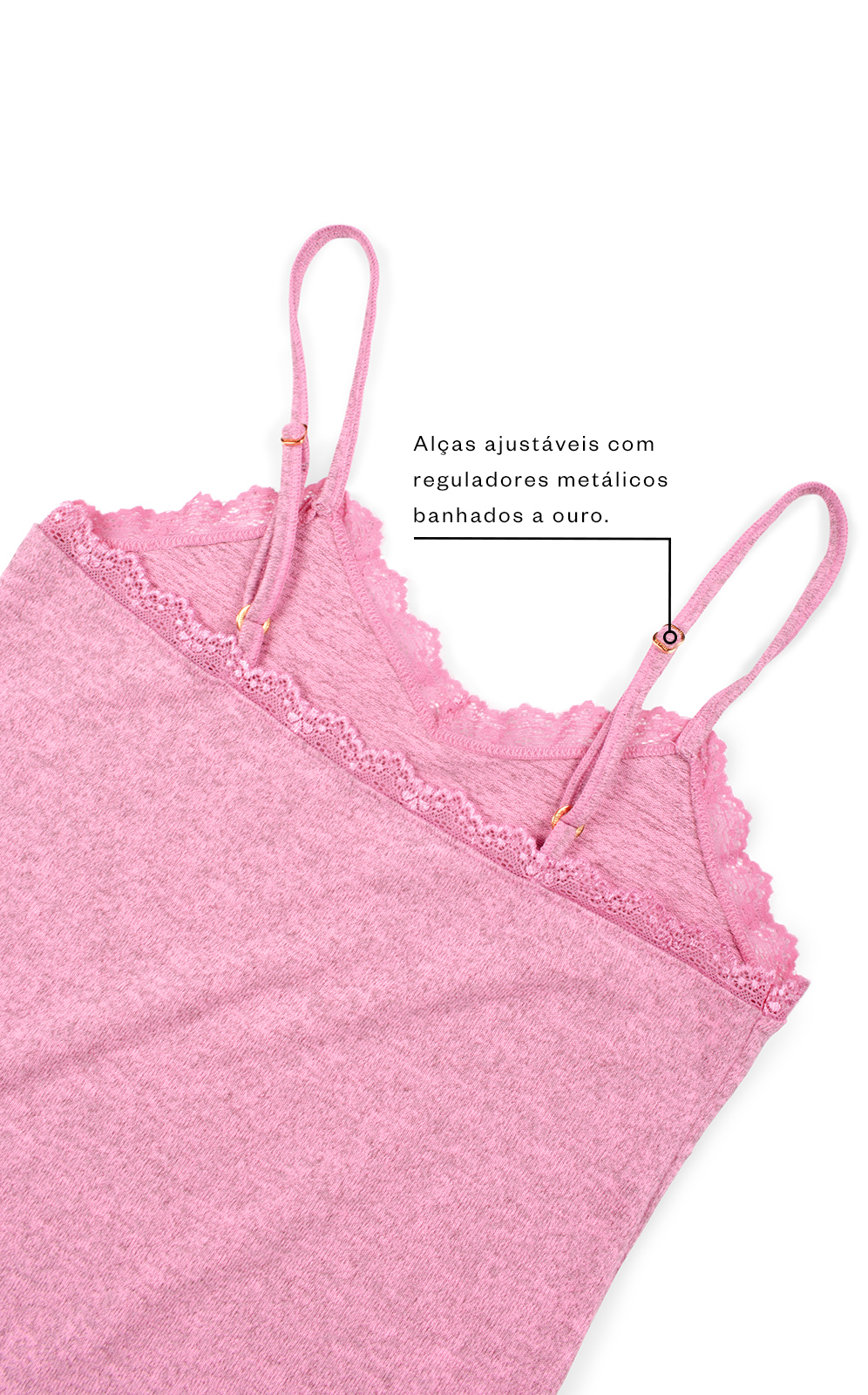 • Alças ajustáveis com reguladores metálicos banhados a ouro.