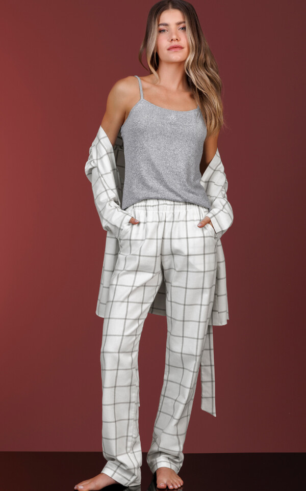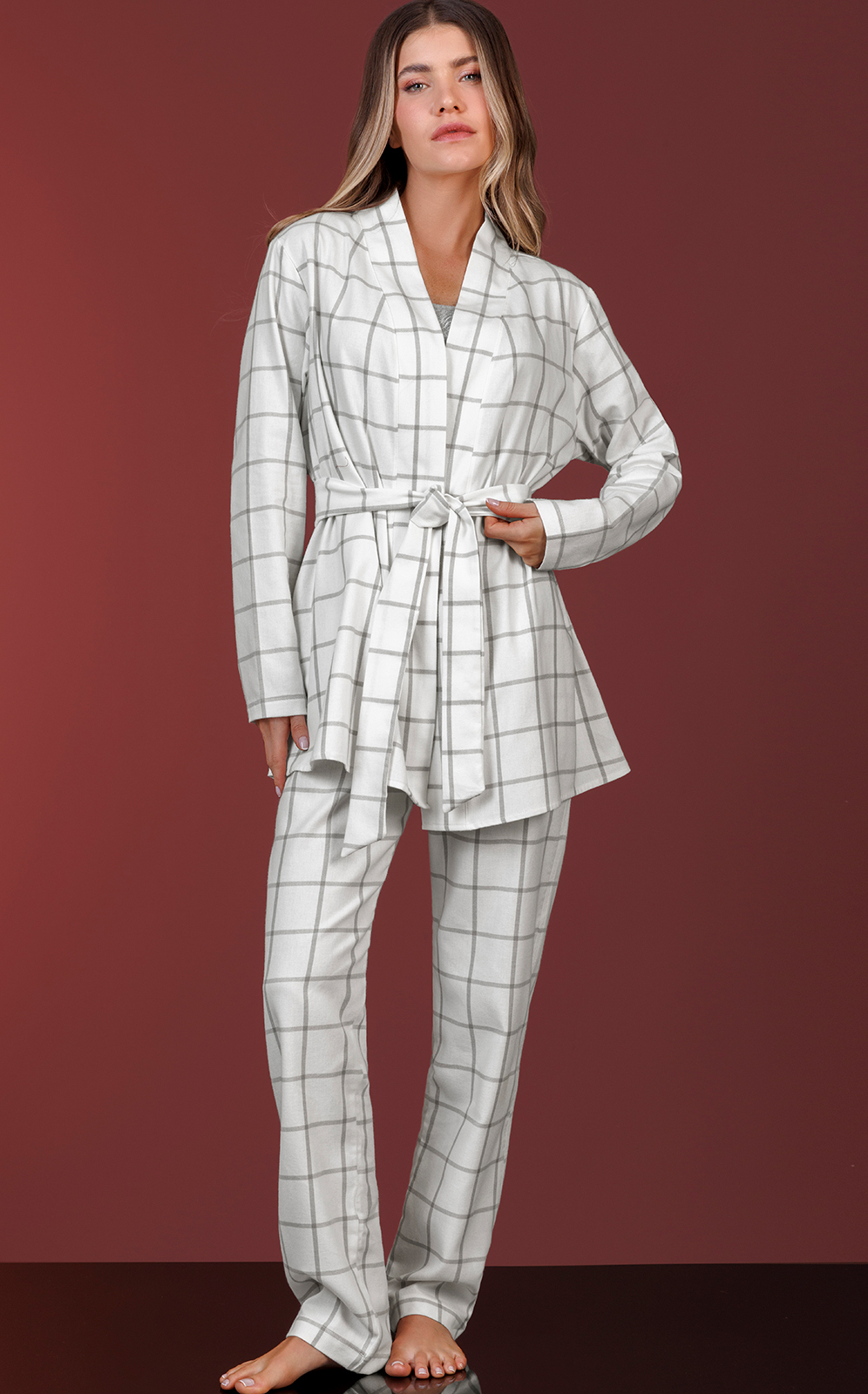A Flanela de Algodão proporciona um toque suave, aveludado e único em nossos conjuntos. Confeccionado com fibras naturais nobres, é o tecido quintessencial do Inverno: aconchegante, quentinho e com elegância de sobra.
